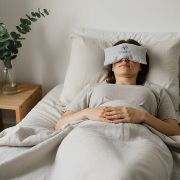 Поставете възглавницата върху затворените си очи. Вдишайте дълбоко и издишайте бавно.
