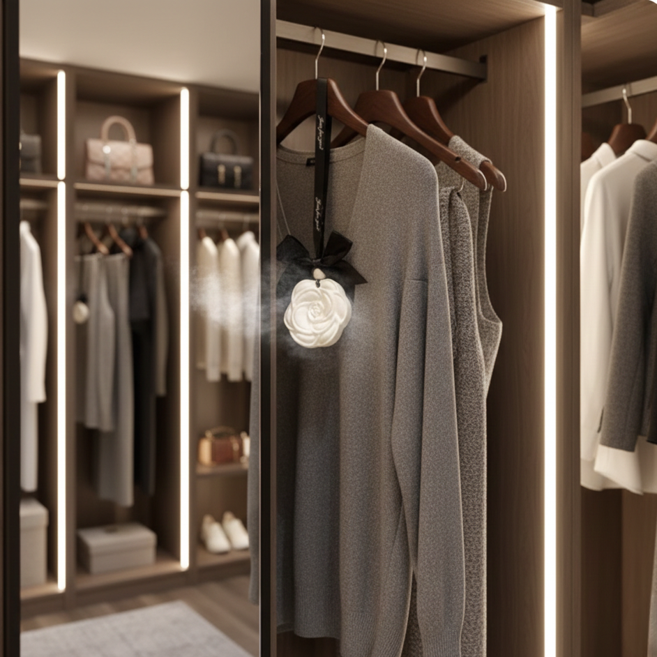 Подходящ е за гардероби, чекмеджета, куфари и малки пространства, където искаш да се усеща свежест и лекота. Дифузерът може да се използва многократно – когато ароматът отслабне, просто добави няколко нови капки.
